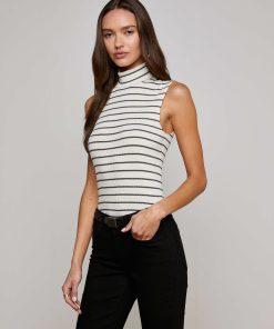 L’agence Women’s Rosie Mock-neck Tank | Black & Ivory Stripe