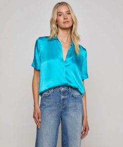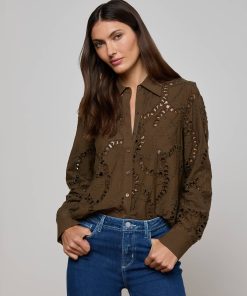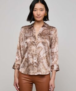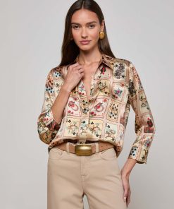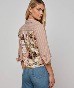 L’agence Women’s Fawn Western Card Print Shirt | Fawn Stripe & Tan Multi Western Cards