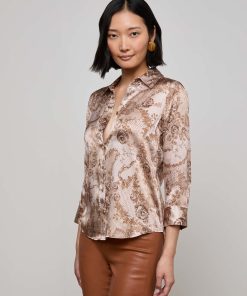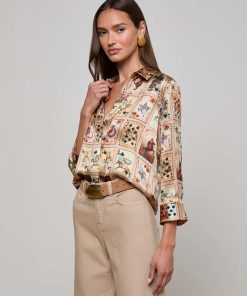 L’agence Women’s Fawn Western Card Print Shirt | Fawn Stripe & Tan Multi Western Cards