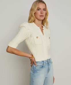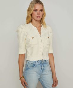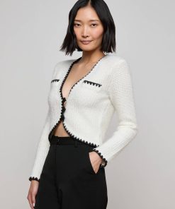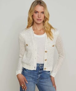 L’agence Women’s Delilah Cropped Cardigan | Vintage White & Gold Knot