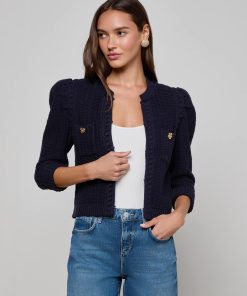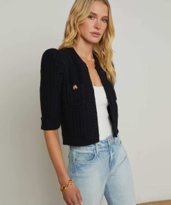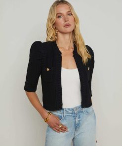 L’agence Women’s Delilah Cropped Cardigan | Black & Gold Knot