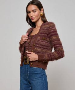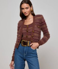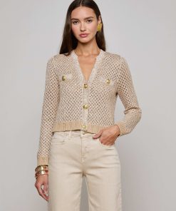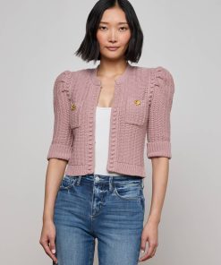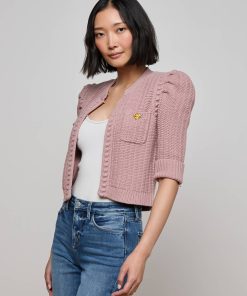 L’agence Women’s Delilah Cropped Cardigan | Light Mauve & Gold