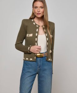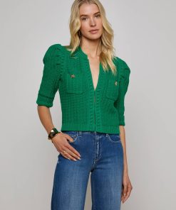 L’agence Women’s Delilah Cropped Cardigan | Kelly Green & Gold Knot