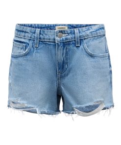 Subtle distressing and a frayed hem lend a casual cool vibe to this quintessential jean short. Now in a light wash.