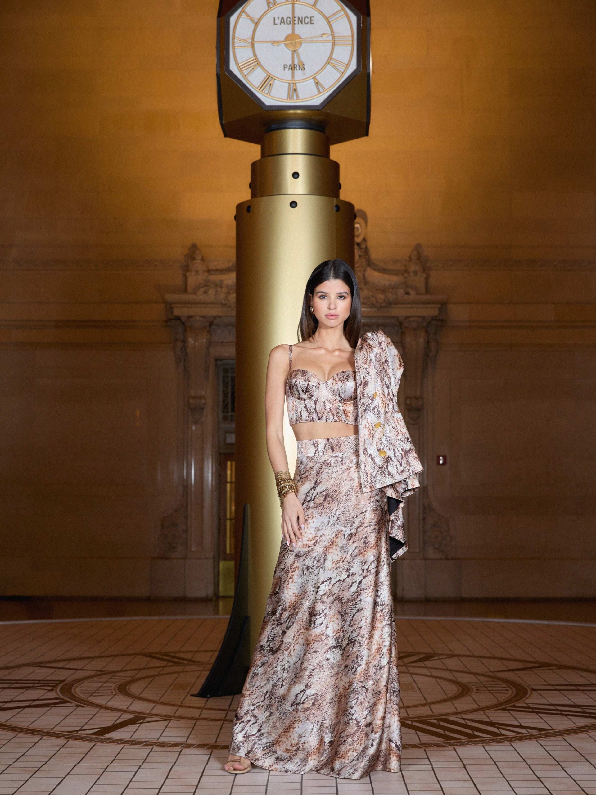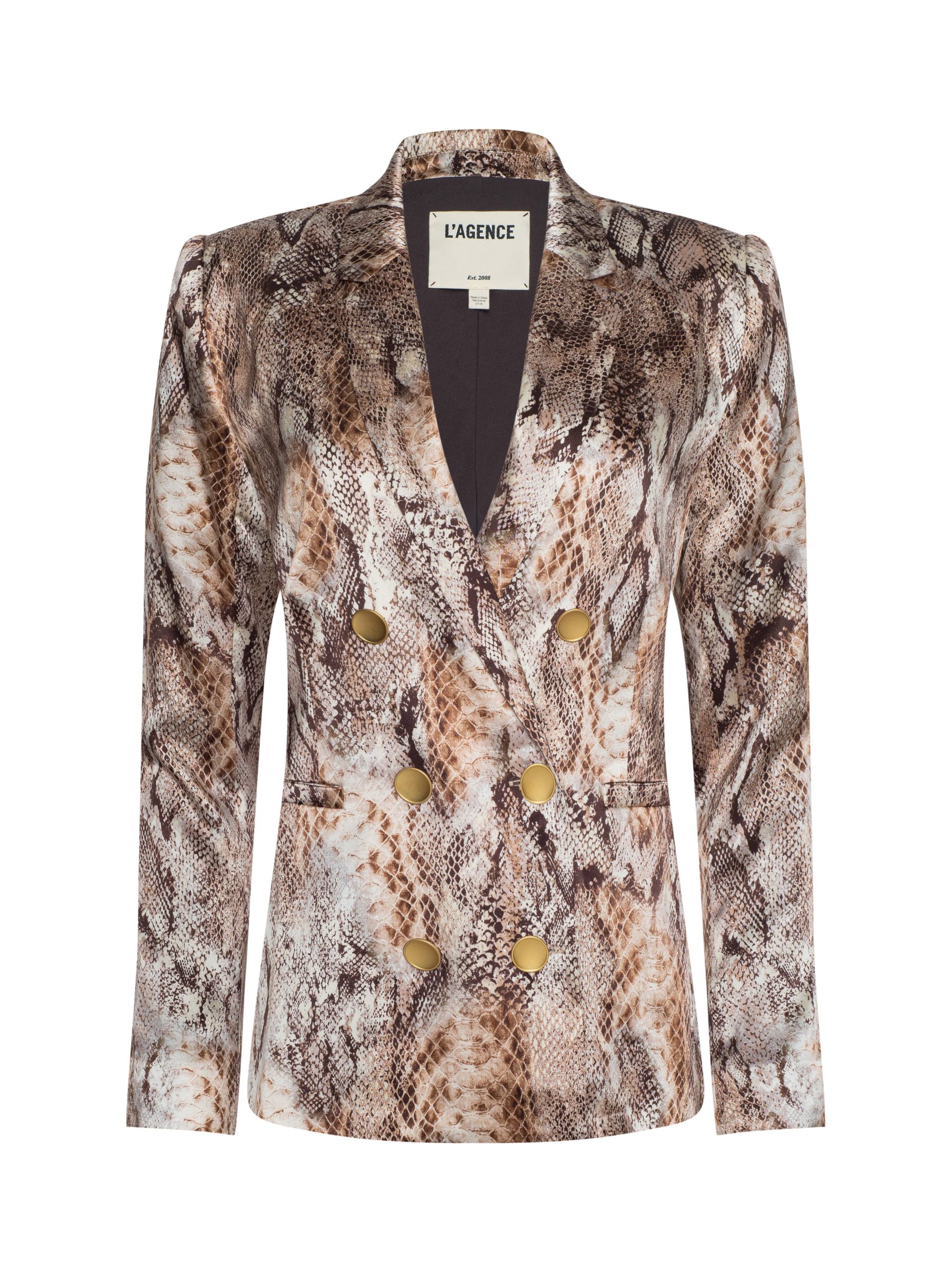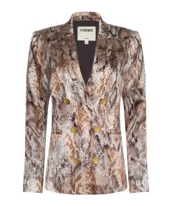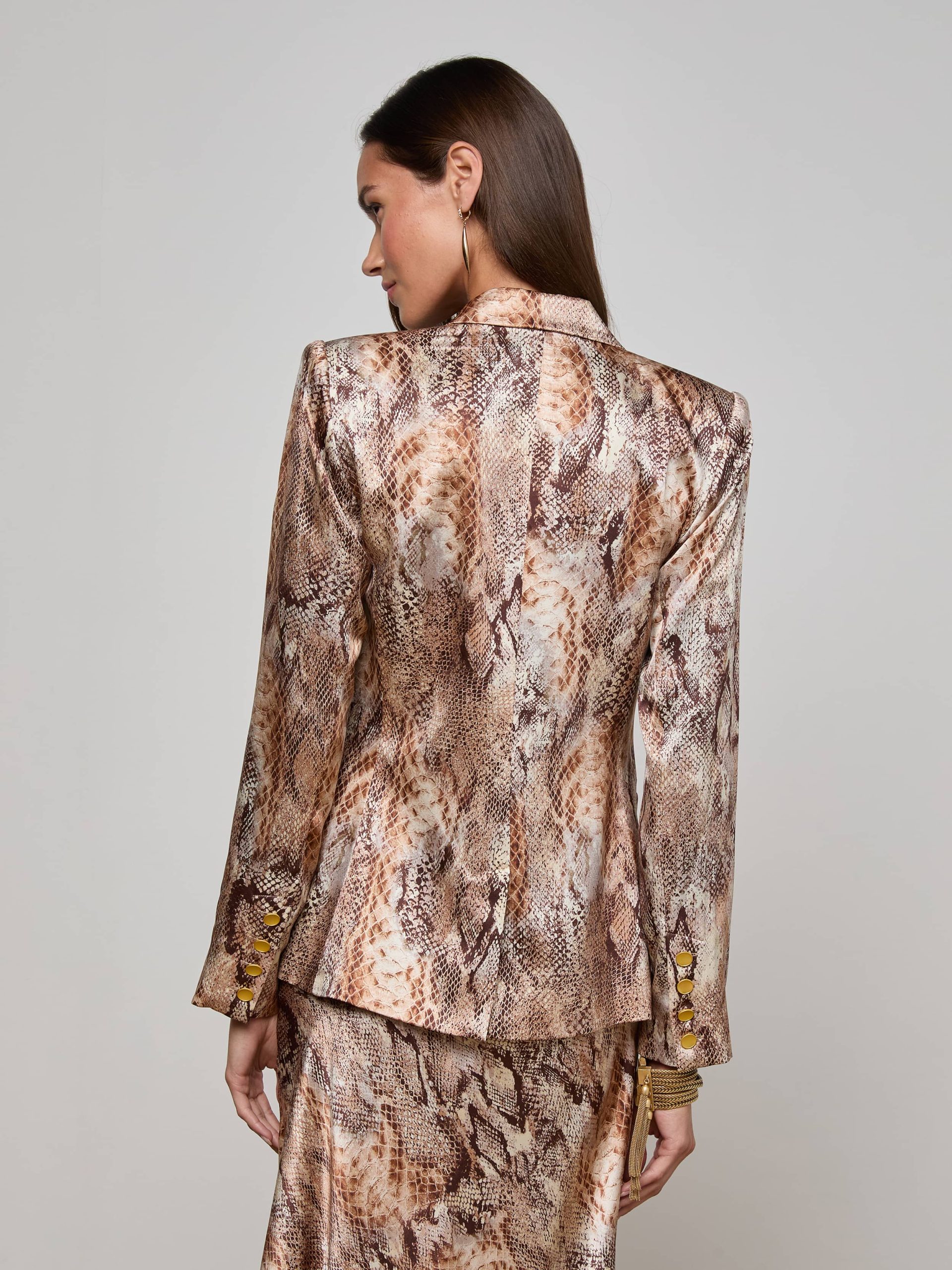 The Colin blazer in snake print debuted at the Fall ‘25 NYFW presentation. Subtle feminine shaping balances the crisp tailored details of this silk double-breasted blazer.