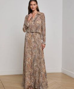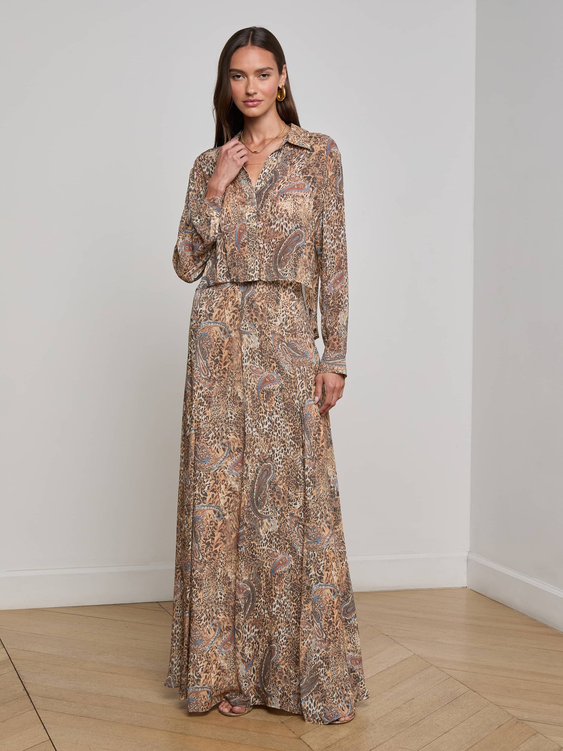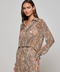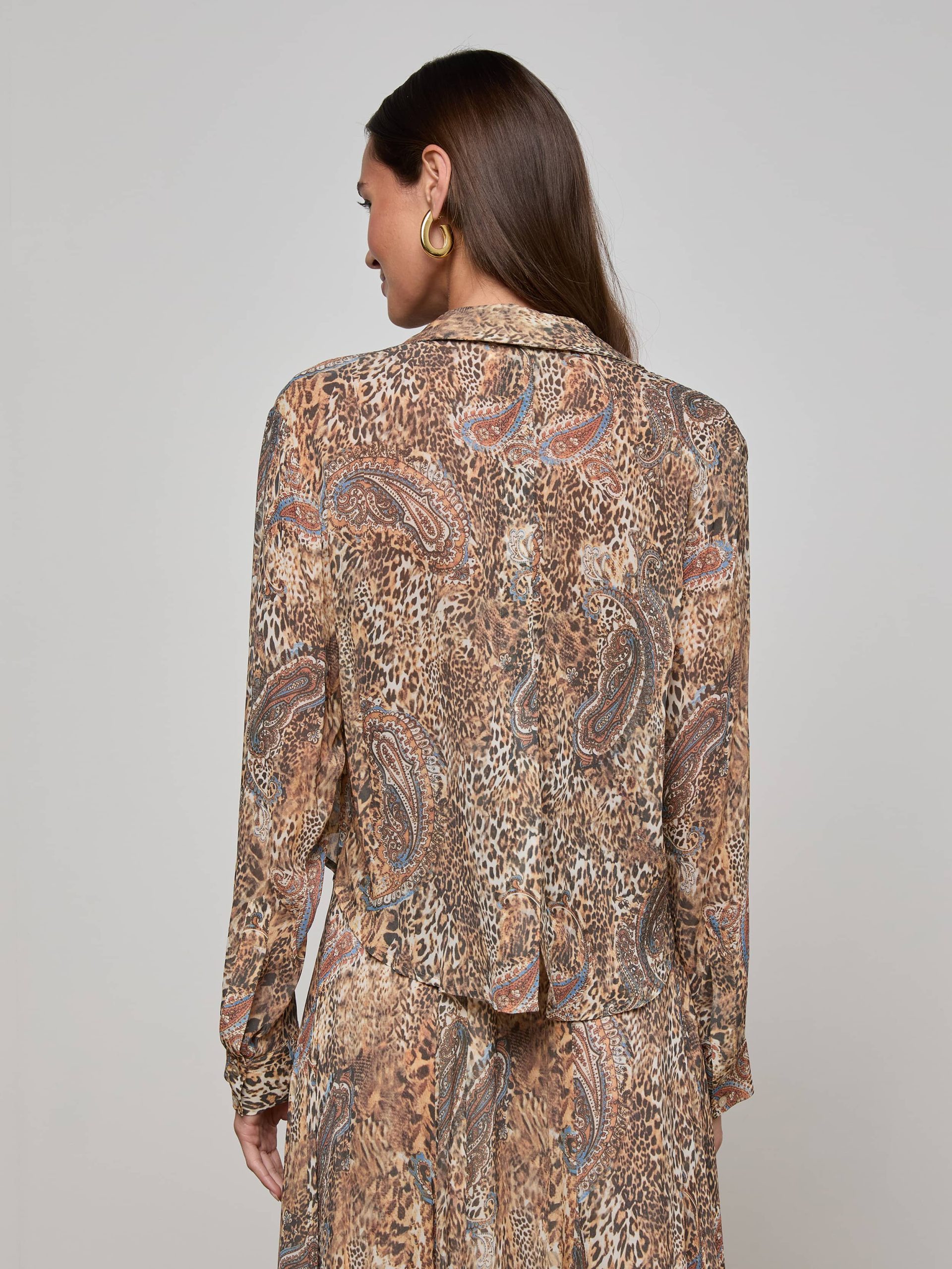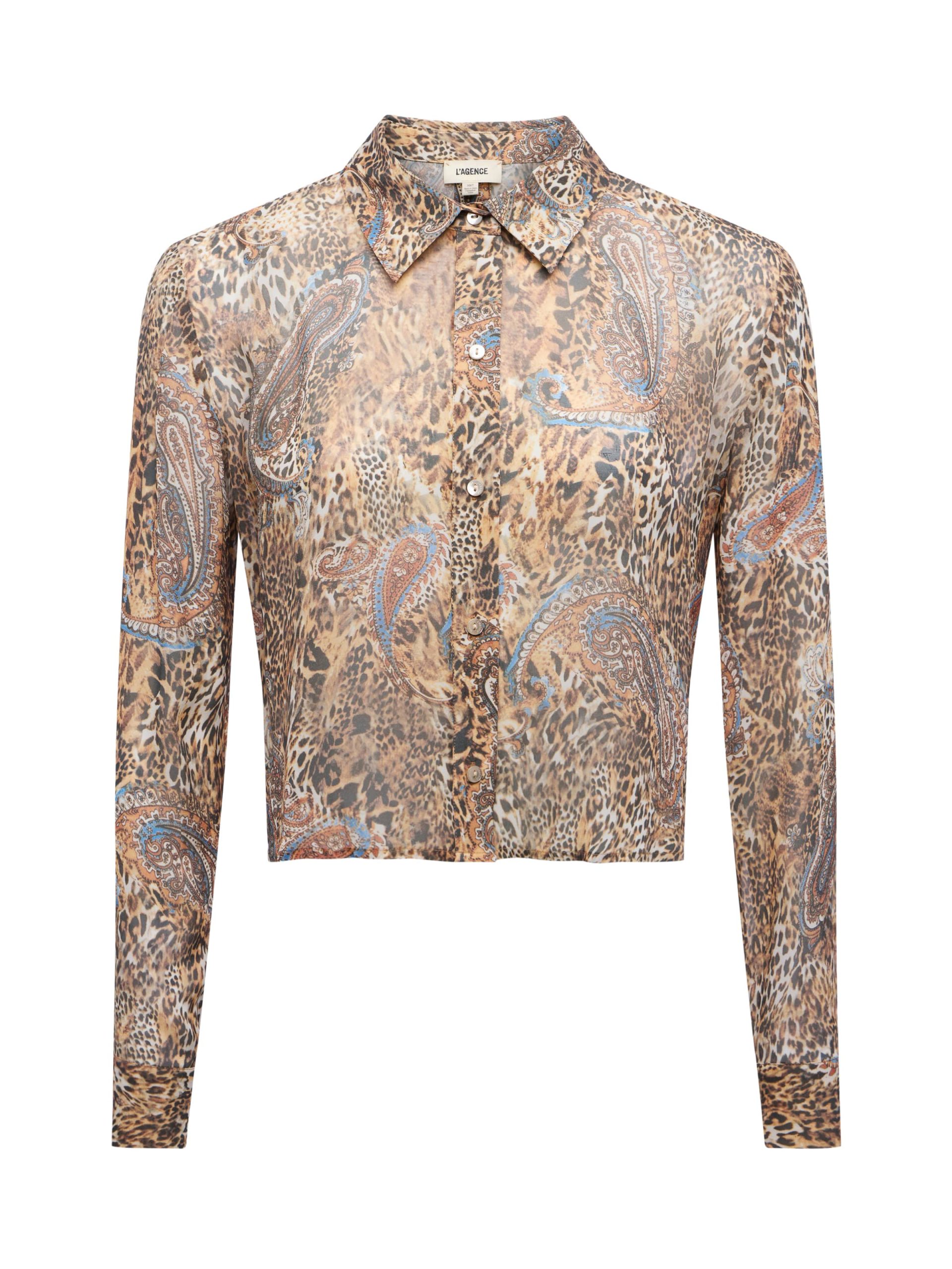 L’agence Women’s Cosette Button-down Shirt | Brown & Blue Valencia Leopard