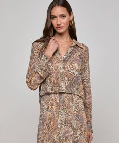 L’agence Women’s Cosette Button-down Shirt | Brown & Blue Valencia Leopard