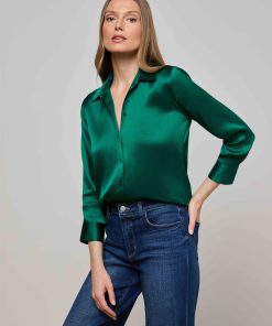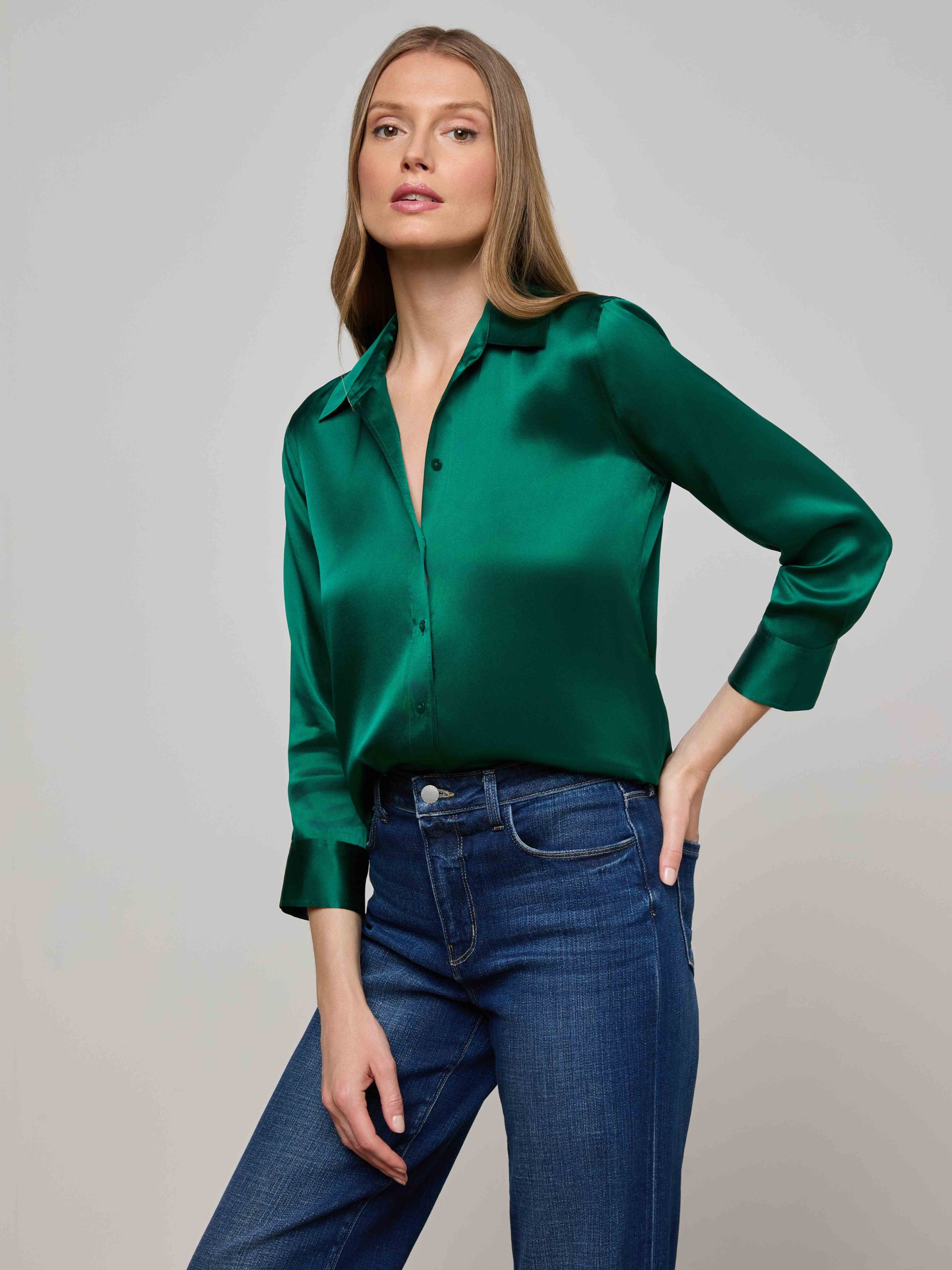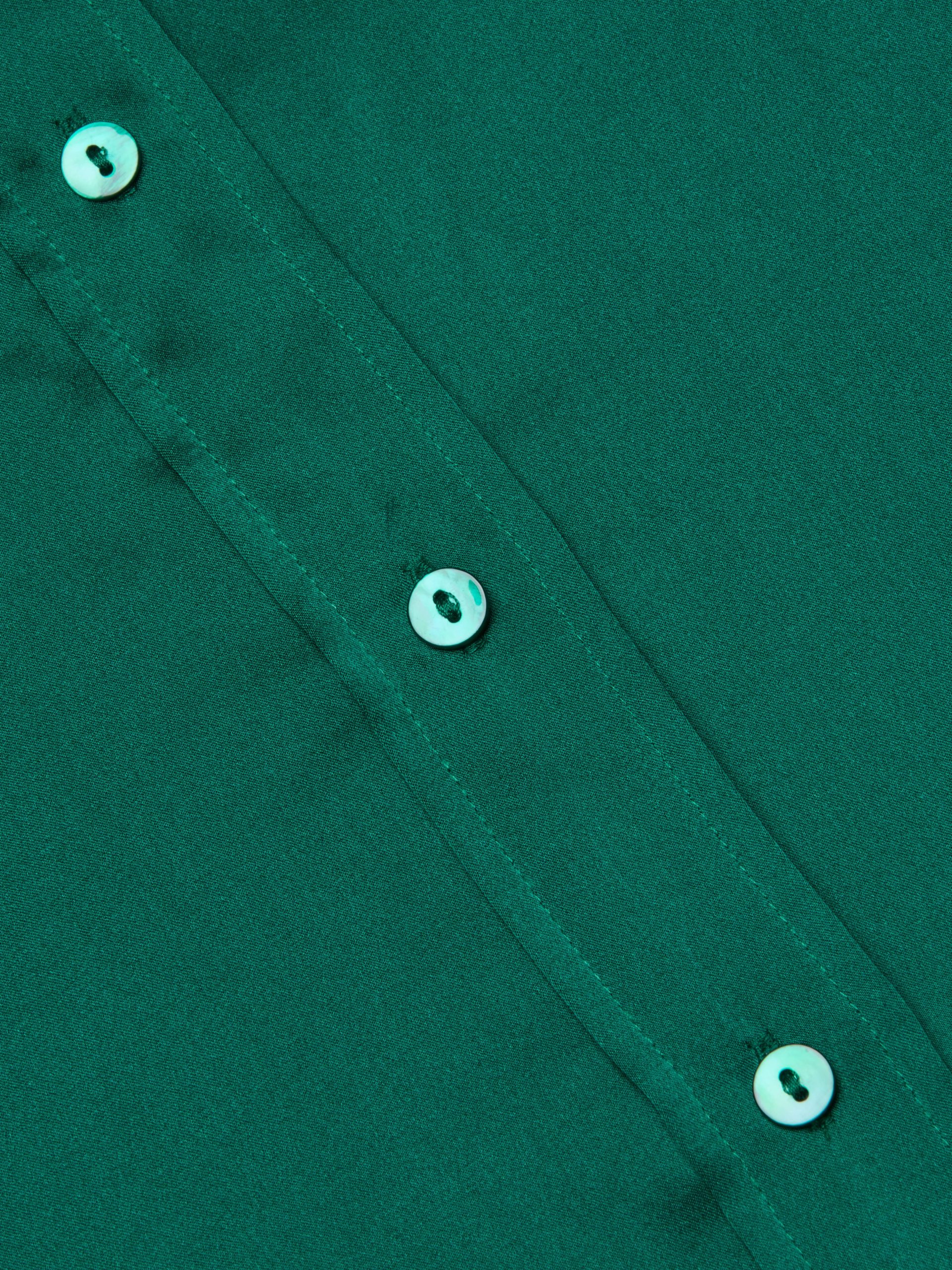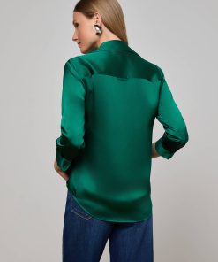 Meet the iconic silk button-down that belongs in every wardrobe. Our signature three-quarter sleeve shirt is back in a rich dark green.