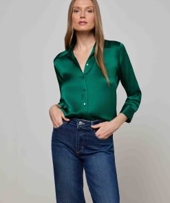 Meet the iconic silk button-down that belongs in every wardrobe. Our signature three-quarter sleeve shirt is back in a rich dark green.