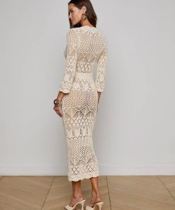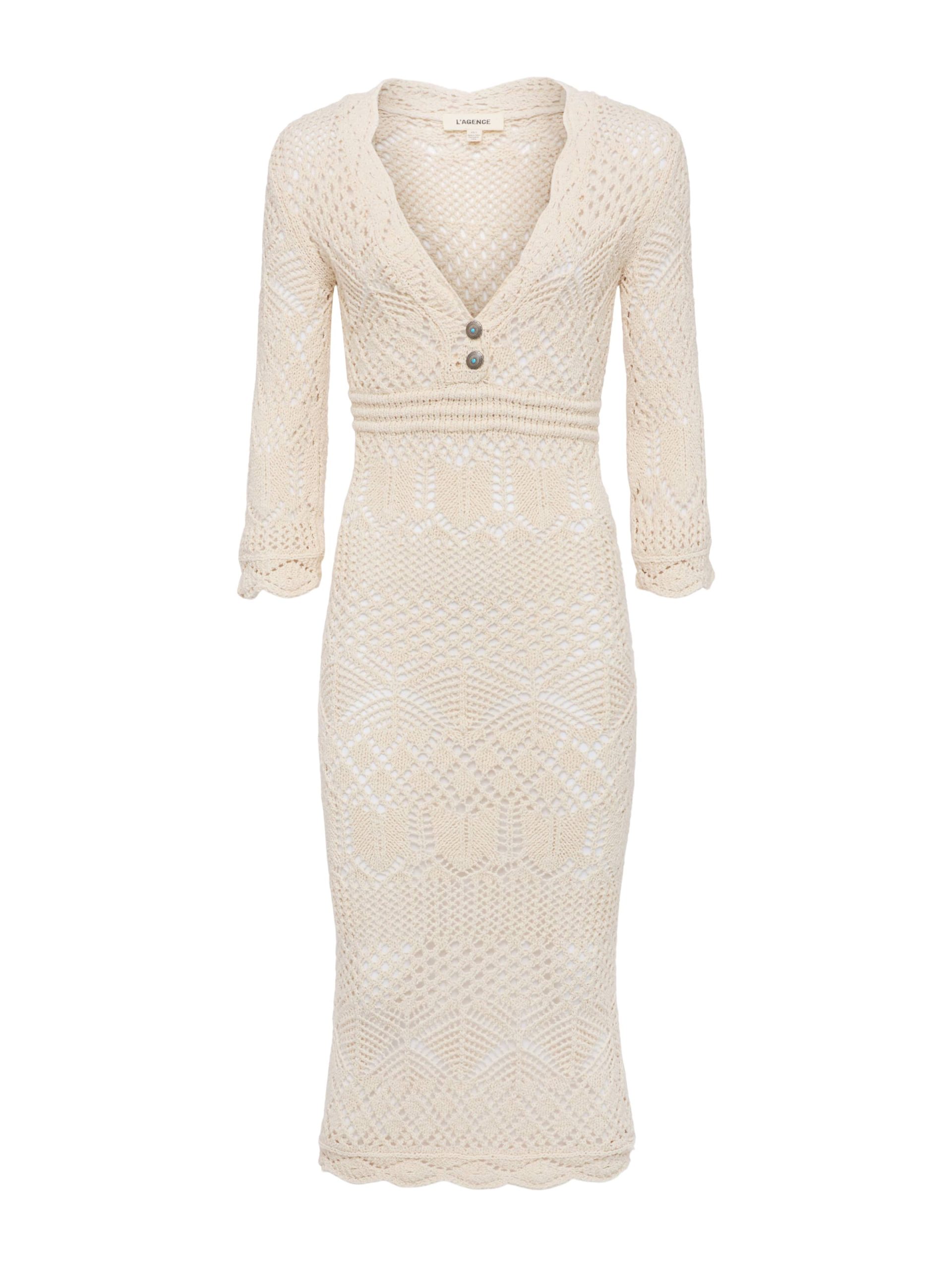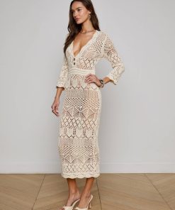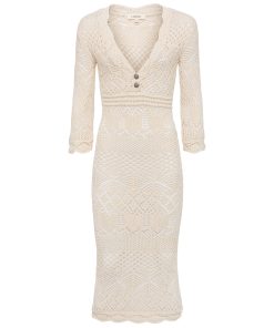Beach days, evenings on the yacht, seaside cocktails–the Dovie knit dress is your answer to every activity near sand and saltwater. Featuring a deep V-neck and scalloped trims, it’s perfect as a flattering cover-up or layered over tonal pieces.