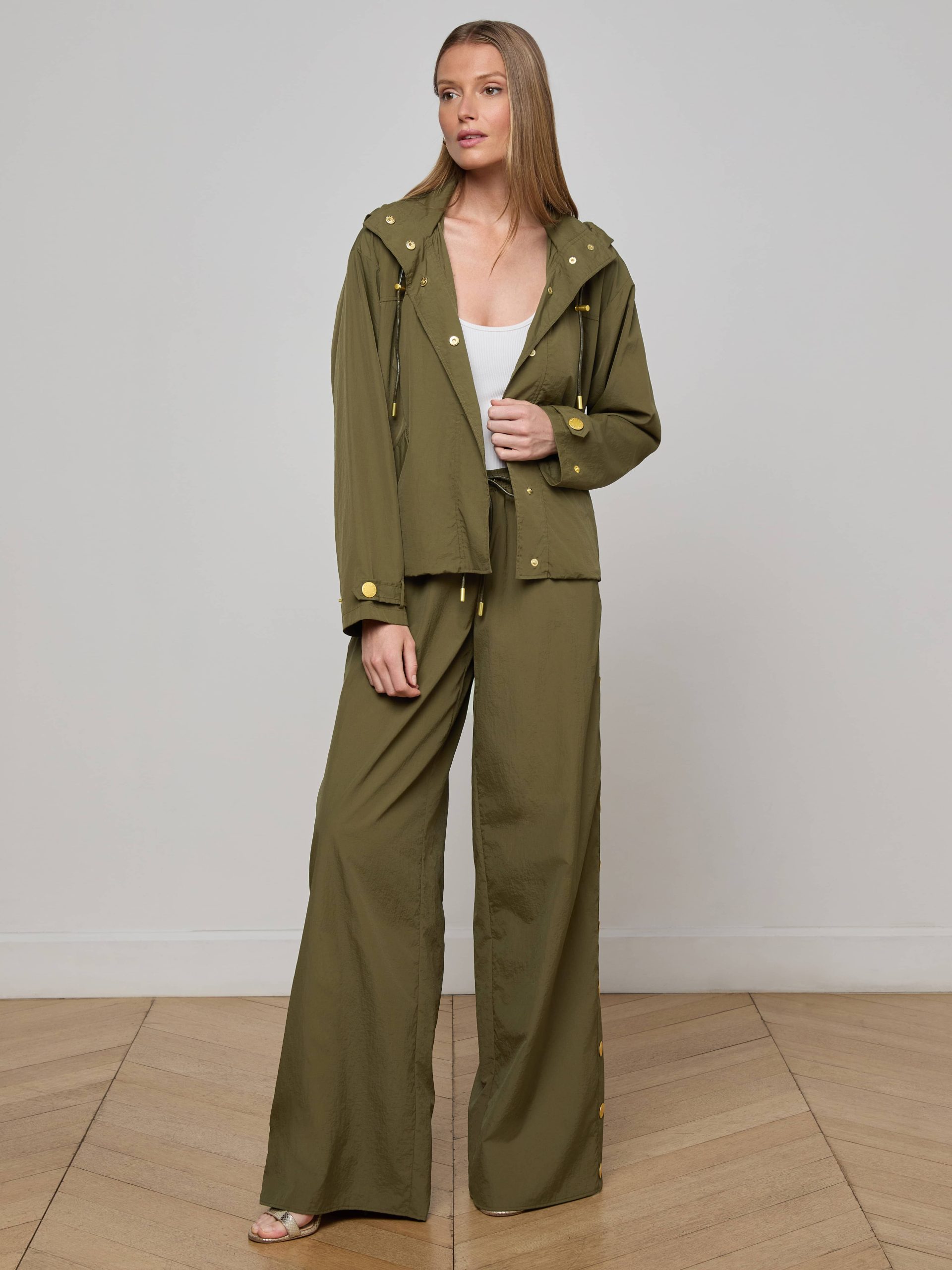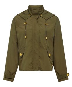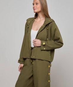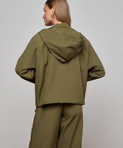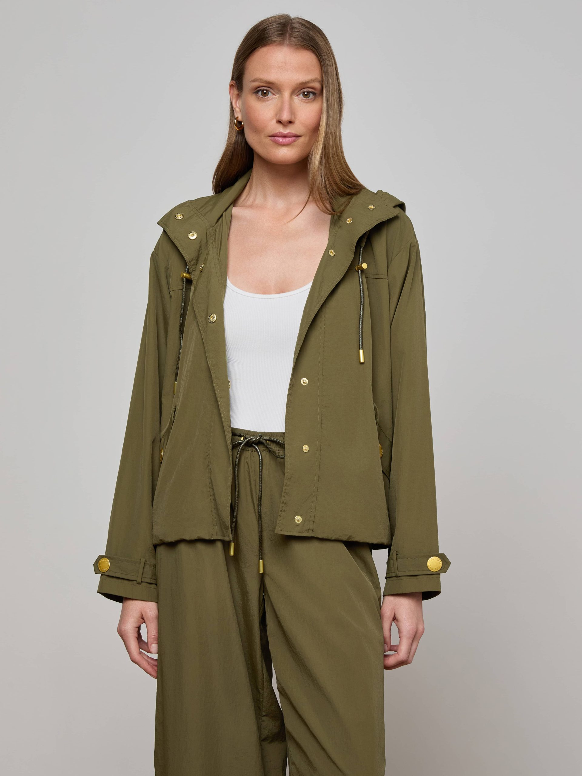 Cool, chic & functional. The Geovana windbreaker is constructed with a water repellant finish, a drawstring hood, and elevated hardware. A travel must-have and year-round essential.