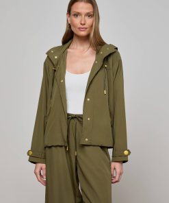 Cool, chic & functional. The Geovana windbreaker is constructed with a water repellant finish, a drawstring hood, and elevated hardware. A travel must-have and year-round essential.