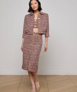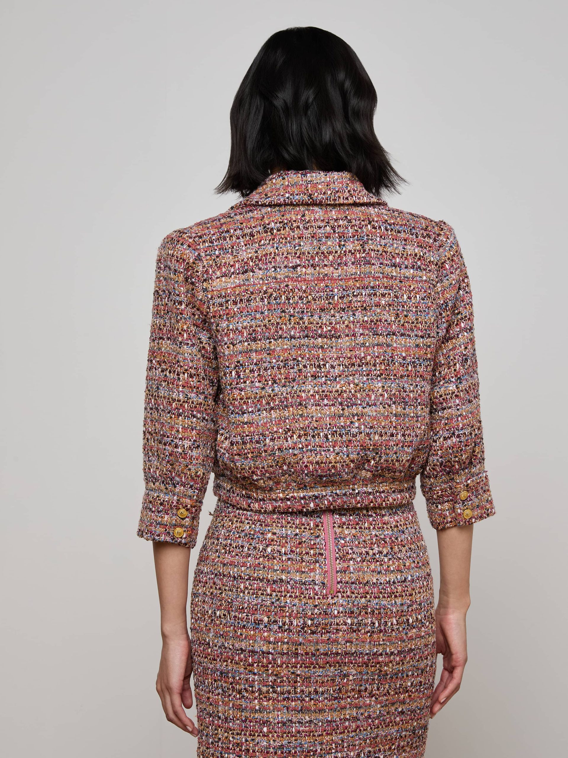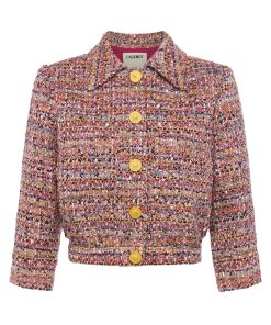A ladylike, three-quarter sleeve jacket crafted from a colorful textured tweed. Wear the Jia as a top or second layer.
