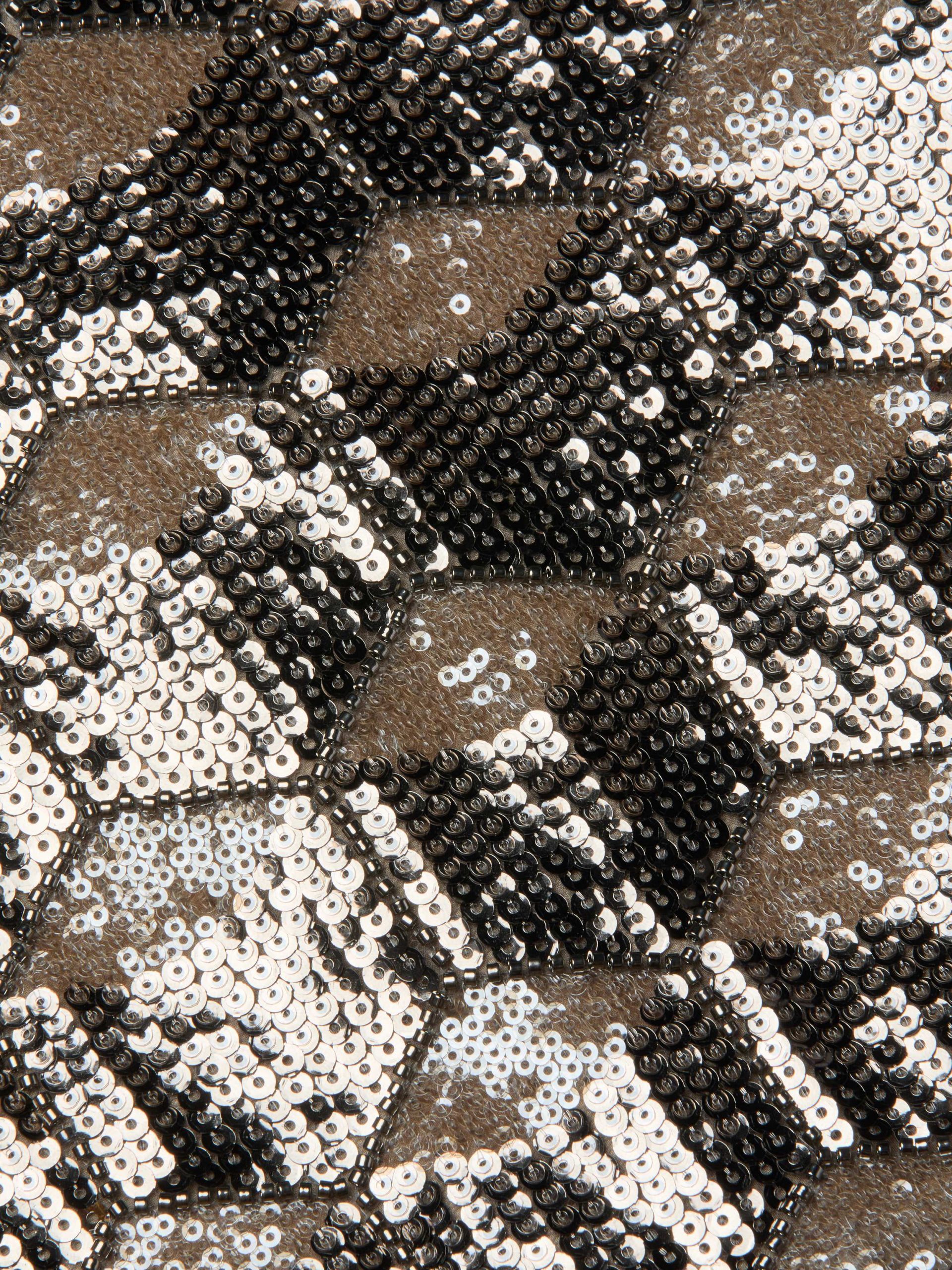 Turn up the drama with the Leroy, a sequined mini skirt featuring an edgy geometric pattern. Perfect for a night out, it delivers major attitude and shine with every step.