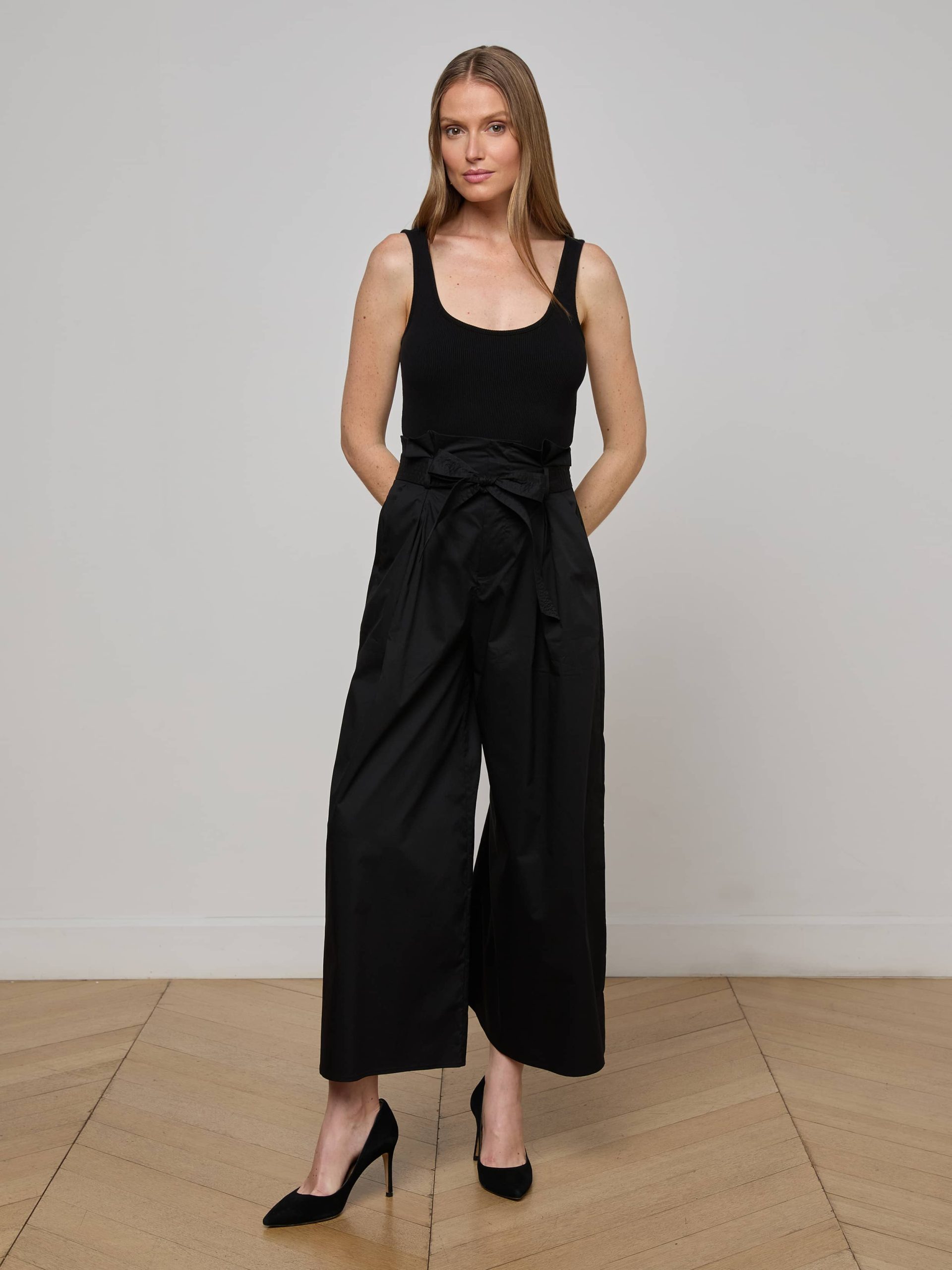 With a cinched, flattering fit and a super-wide cropped leg, the Lowen pant brings a breezy elegance to any wardrobe. Now in timeless black poplin.