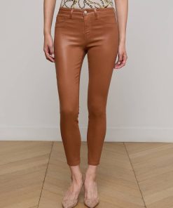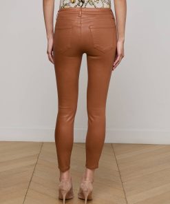 Our iconic cropped skinny jean, constructed with super stretch coated denim for all-day ease and designed with a contoured waistband that hugs the natural waist without gaping. Now in our cognac leather-alternative coated denim.