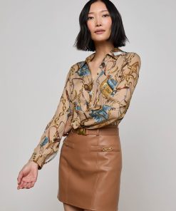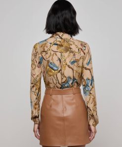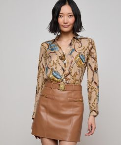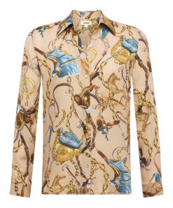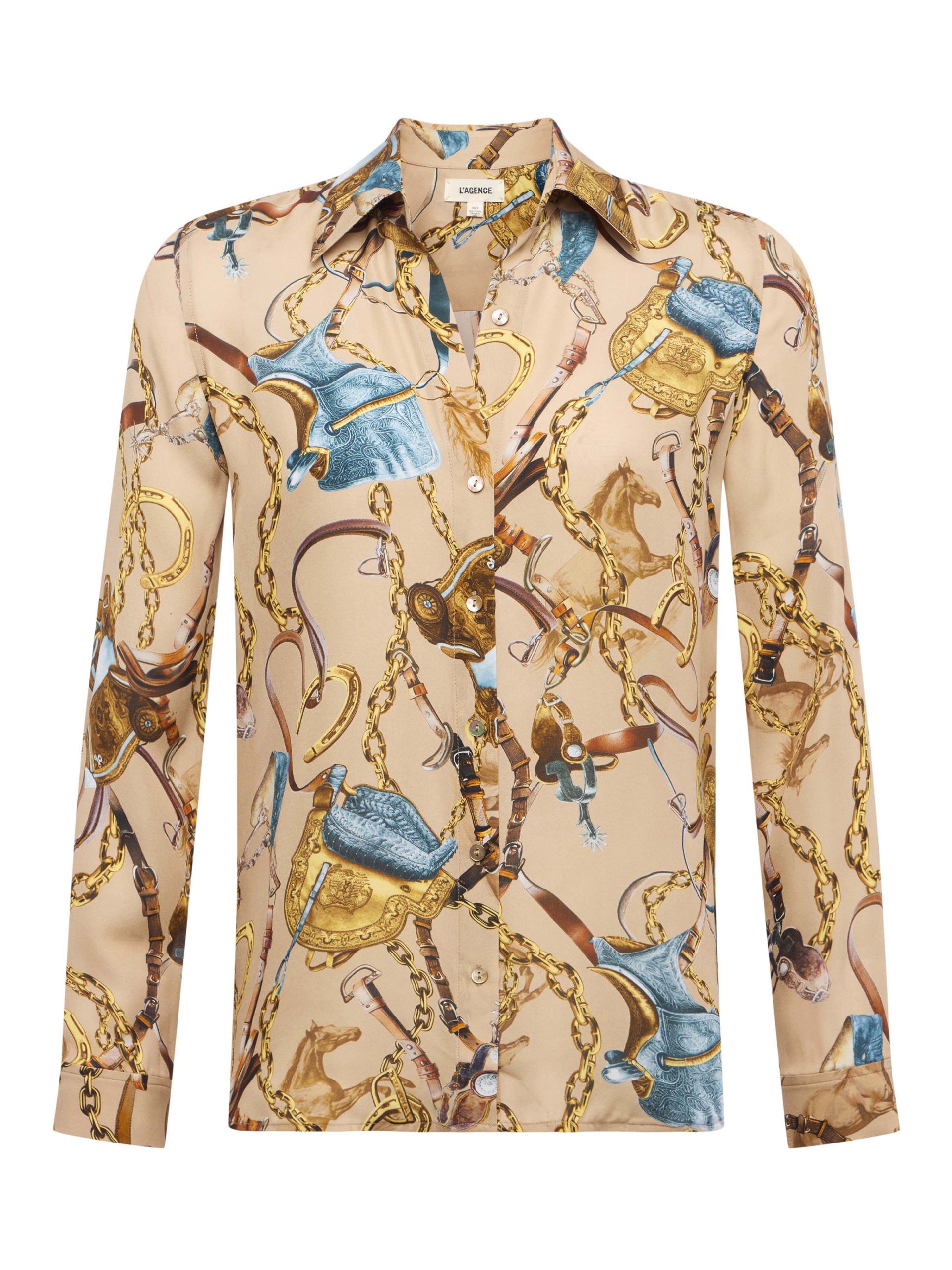 L’agence Women’s Nina Silk Blouse | Dark Cappuccino Multi Equestrian Saddle