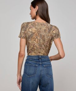 In a soft, supple fabrication and slim cut, Ressi is our most flattering short sleeve tee. Reimagined in new prints and colorways every season, she’s a L’AGENCE favorite year after year. Now in a leopard-meets-paisley print.