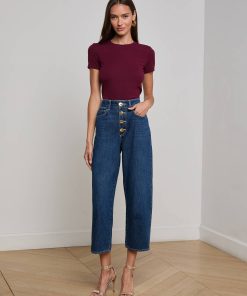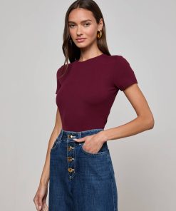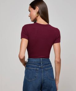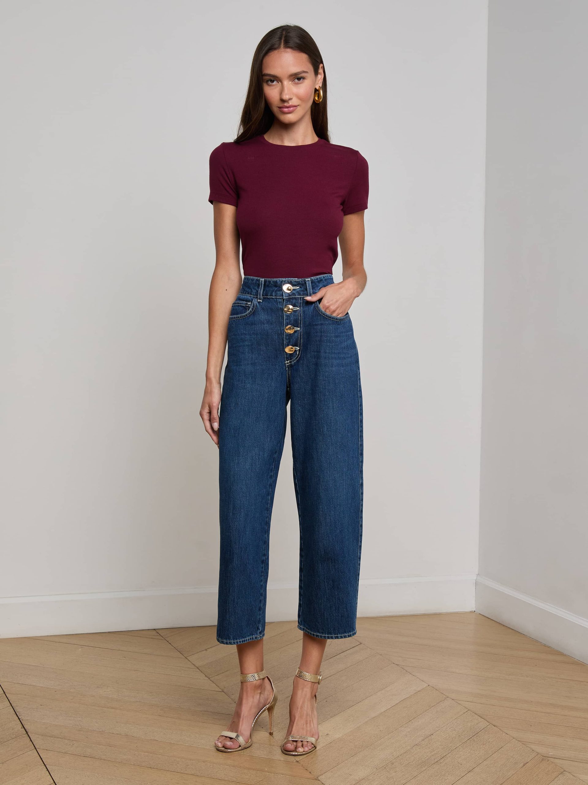 In a soft, supple fabrication and slim cut, Ressi is our most flattering short sleeve tee. Reimagined in new prints and colorways every season, she’s a L’AGENCE favorite year after year. Now back in burgundy.