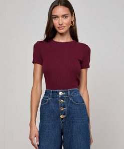 In a soft, supple fabrication and slim cut, Ressi is our most flattering short sleeve tee. Reimagined in new prints and colorways every season, she’s a L’AGENCE favorite year after year. Now back in burgundy.
