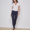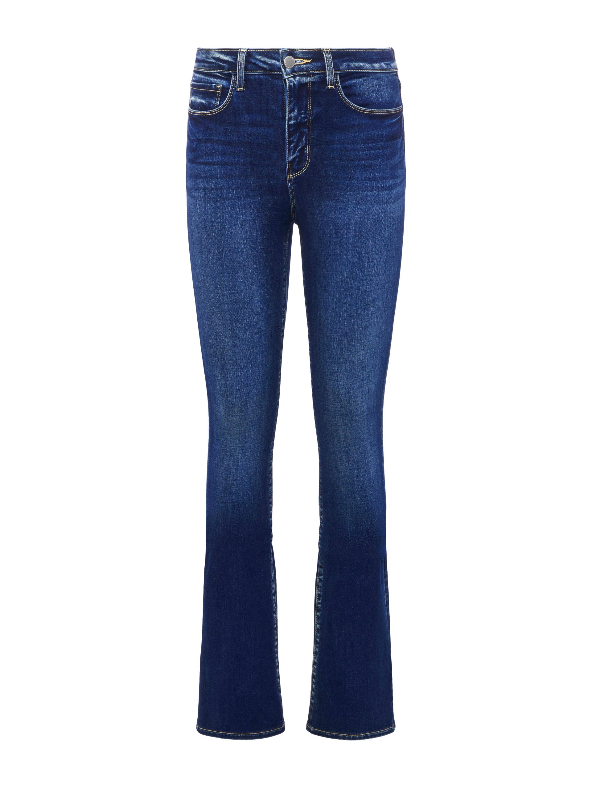 A classic high-rise jean in true-blue premium stretch denim that includes REPREVE, a sustainable, high-performance recycled fiber. Meticulous sanding and whiskering enhance fabric’s character. Contoured waistband fits securely at the natural waist, then hugs from hip to knee before releasing into a slim bootcut hem. Super-stretch denim holds its shape, smoothing the figure without sacrificing comfort. Contrast topstitching highlights five-pocket construction. Zip fly closure. Style No. 2700PWH-COLU