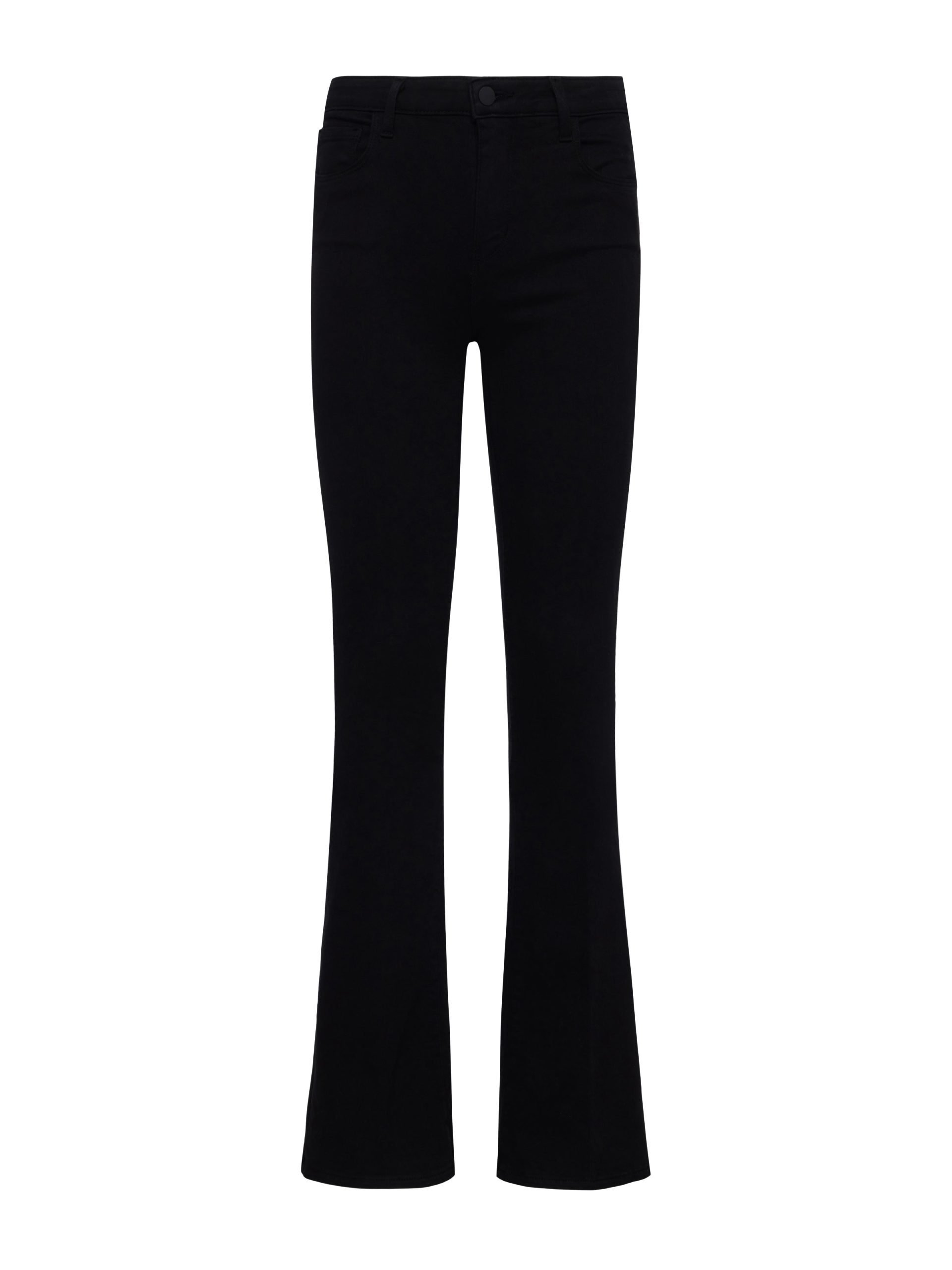 A classic high-rise bootcut jean in true-black. Contoured waistband fits securely at natural waist, then hugs from hip to knee before releasing into a slim bootcut hem. High-recovery super stretch holds its shape, smoothing the figure without sacrificing comfort. Classic five-pocket construction and zip fly closure. Style No. 2700PDD-NOIR