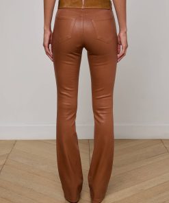 A sleek, slim bootcut, fitted through the hips and knee. A contoured waistband securely hugs the natural waist without gaping. Now in our cognac leather-alternative coated denim.
