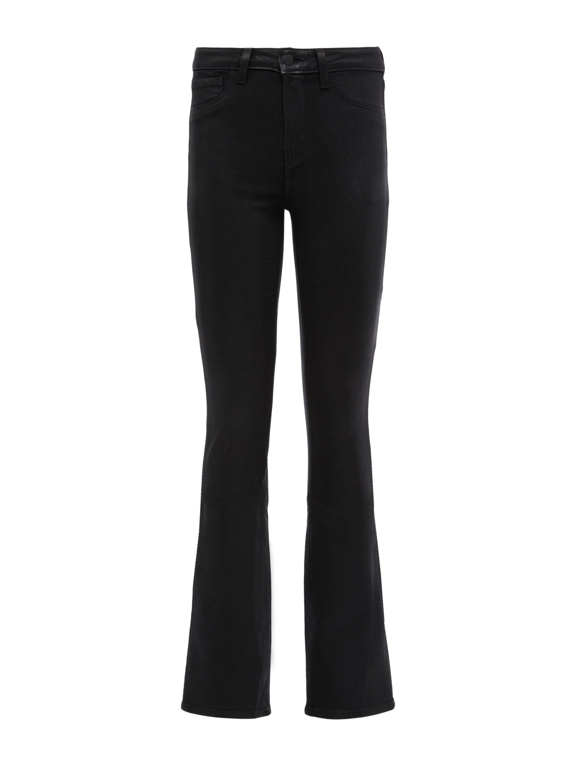 A classic high-rise jean in a coated premium stretch denim in true black. Subtly lustrous style features a contoured waistband that fits securely at the natural waist, while the design hugs from hip to knee before releasing into a slim bootcut hem. The high-recovery denim style is finished with a classic five-pocket construction and front zip fly closure. Style No. 2700PDDC-NOCO