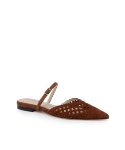 The Jacklyn is a pointed-toe flat mule, ideal for easing into warmer weather. A woven suede upper adds breathability, while a sleek strap gives it support and a polished finish. In brown suede.