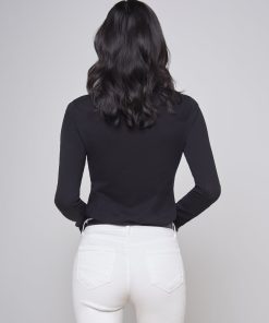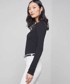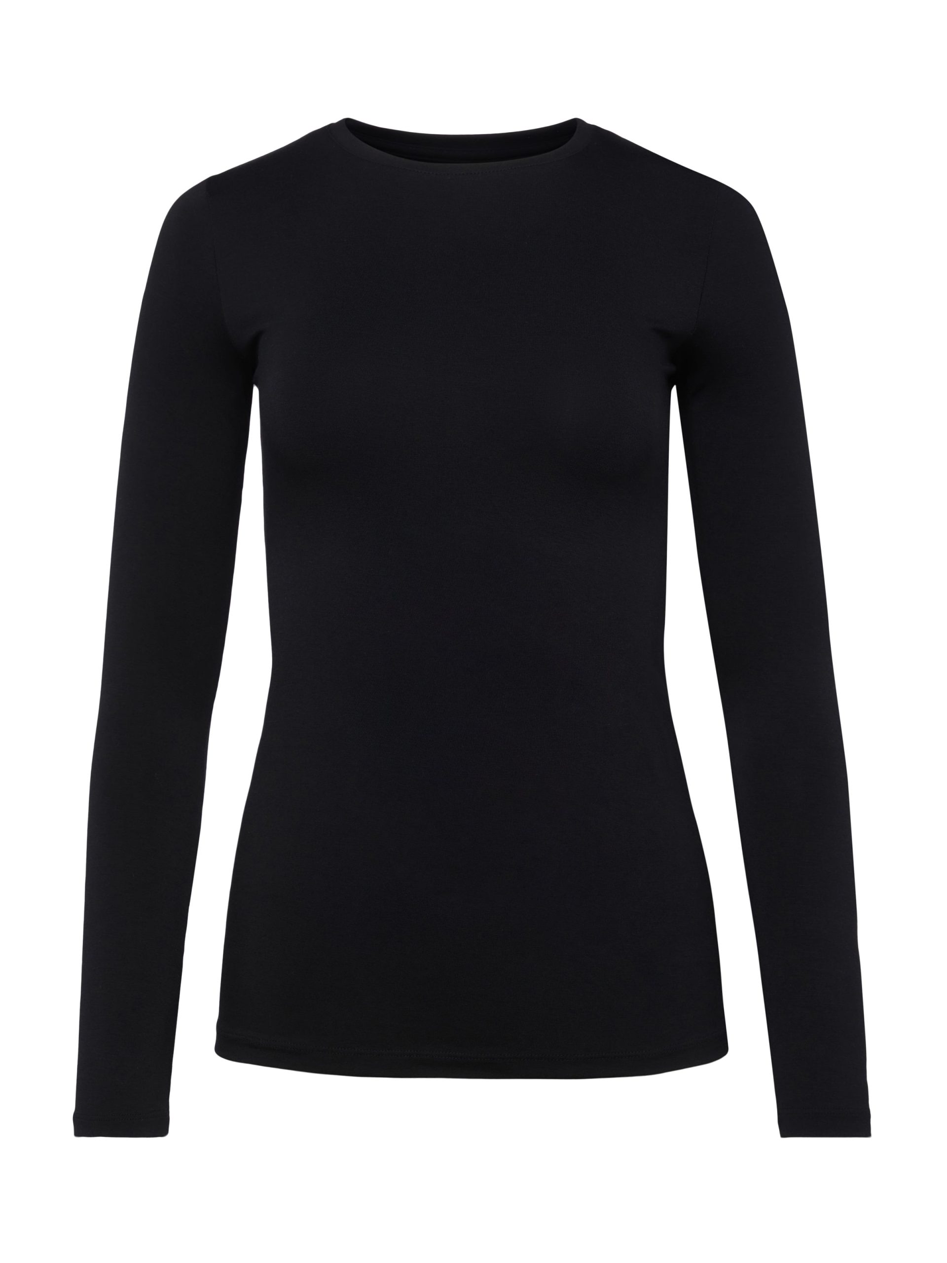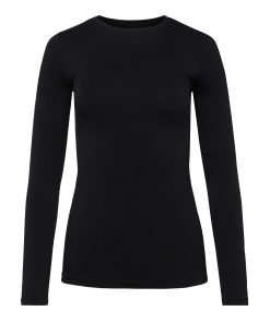 A form-fitting, long-sleeved crew neck tee in rich black. Crafted from soft and stretchy luxe microfiber, Tess features a high crew neck, long sleeves, and a smooth, lean fit. Style No. 5491MJT-BLAC