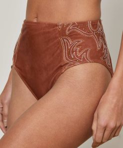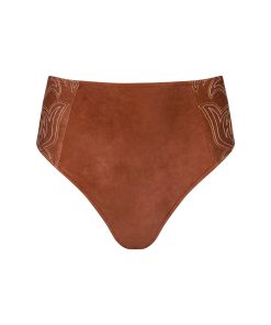 Our most flattering bikini bottom, now with Western-inspired embroidery and tiny stud accents. A suede-look finish adds additional visual intrigue.